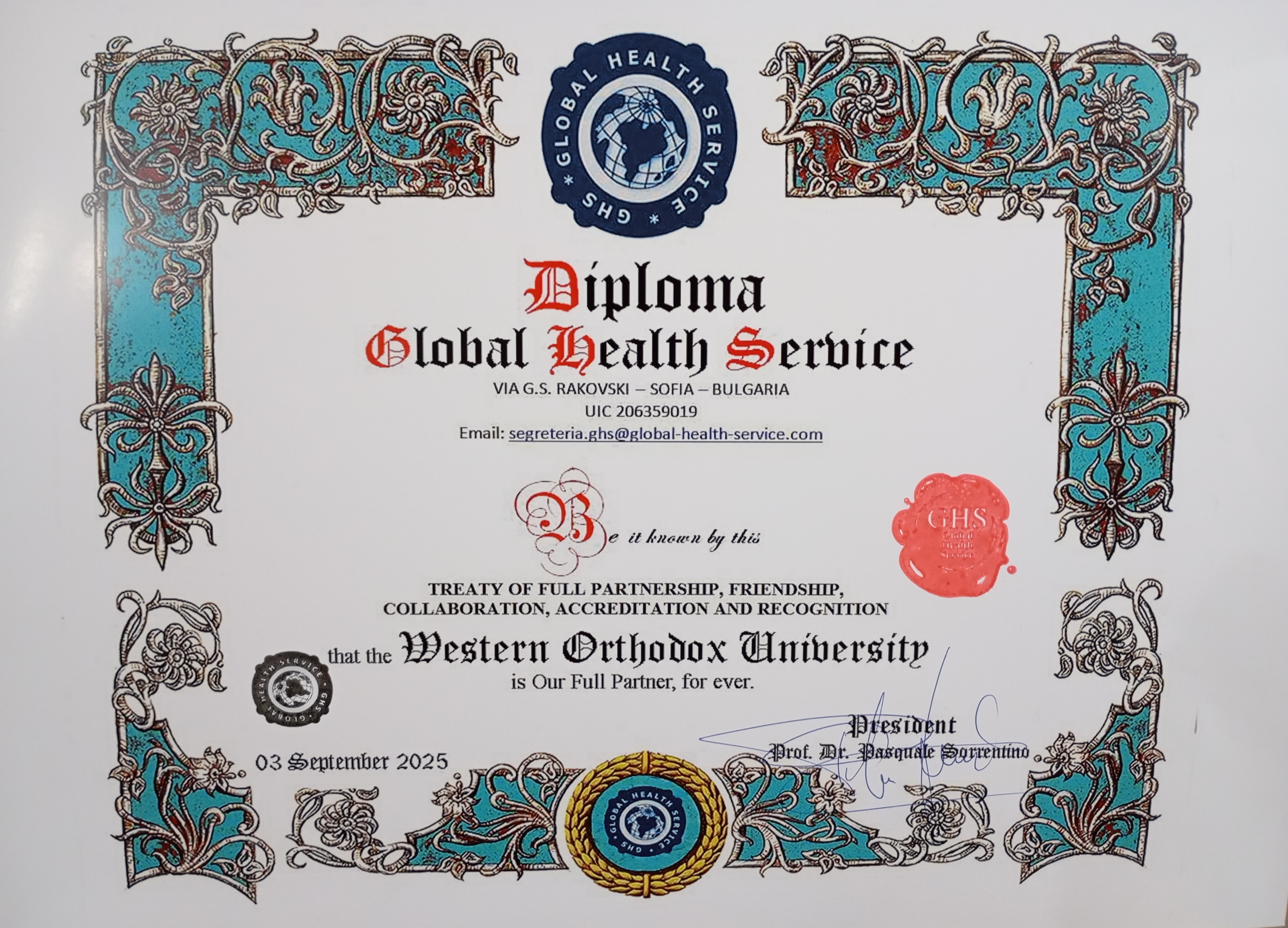 The Western Orthodox University has entered into a reciprocal Treaty of Full Collaboration, Partnership, Accreditation and Recognition with the ASAM University and have also received a Certificate of Appreciation from the University. The ASAM University is a private university registered in Rome, Italy, since 1996. For further information, see this page.