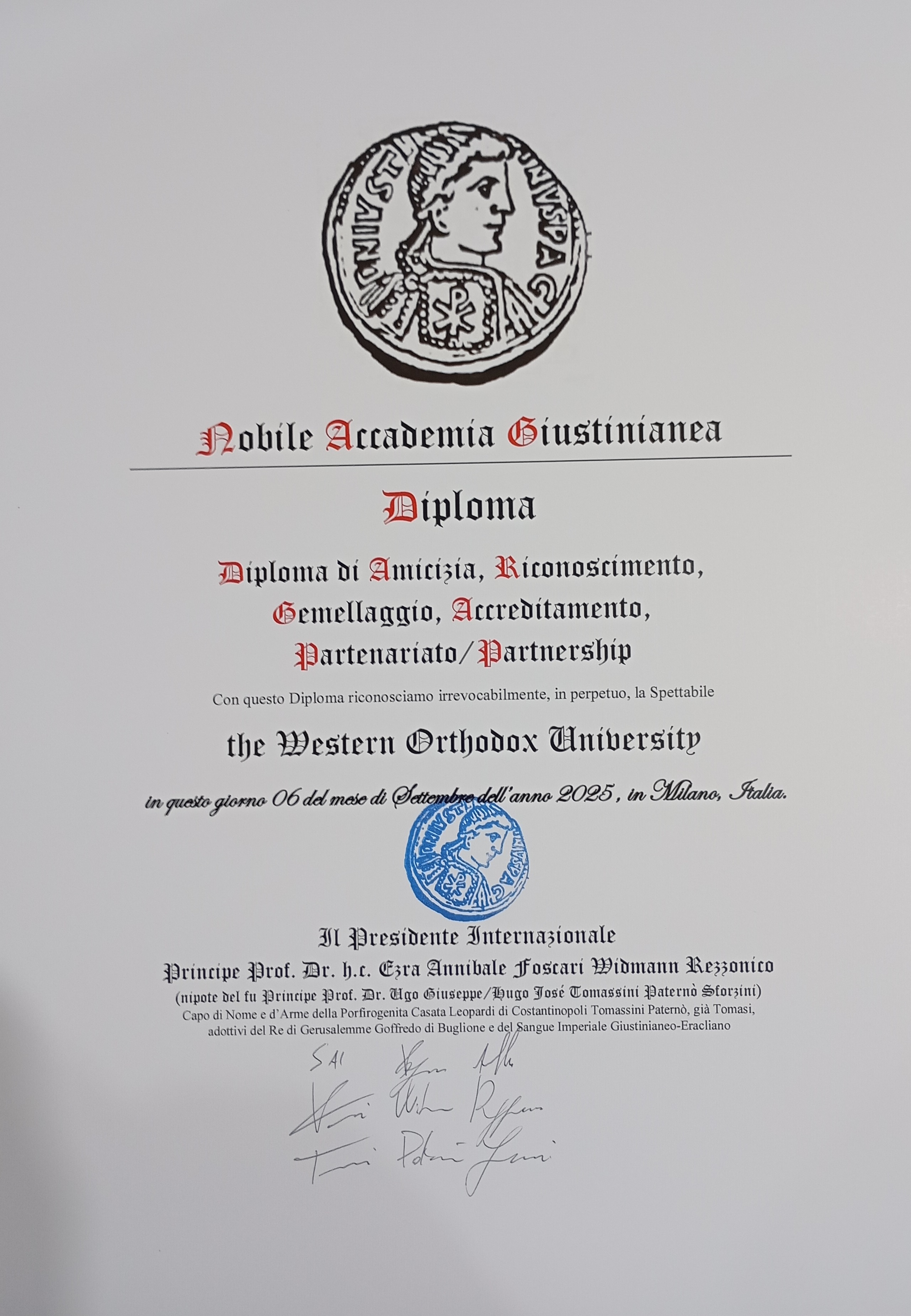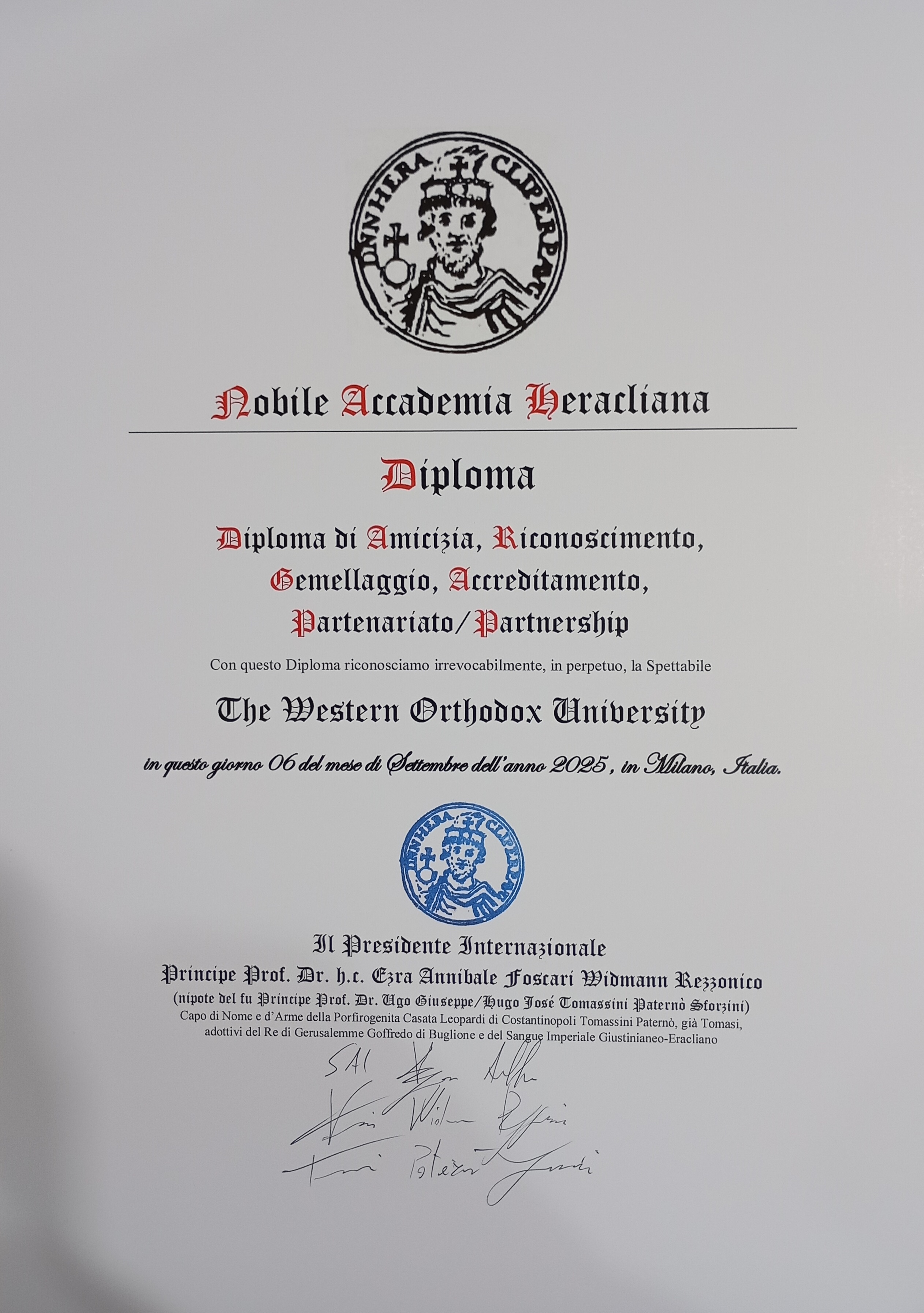 The Western Orthodox University and the Western Orthodox Academy have entered into a reciprocal Treaty of Full Partnership, Friendship, Collaboration, Accreditation and Recognition with the Serenissima Accademia degli Stemmi (Most Serene Academy of Heraldry) of the Royal House of Dalmatia, based in Ferrara, Italy.