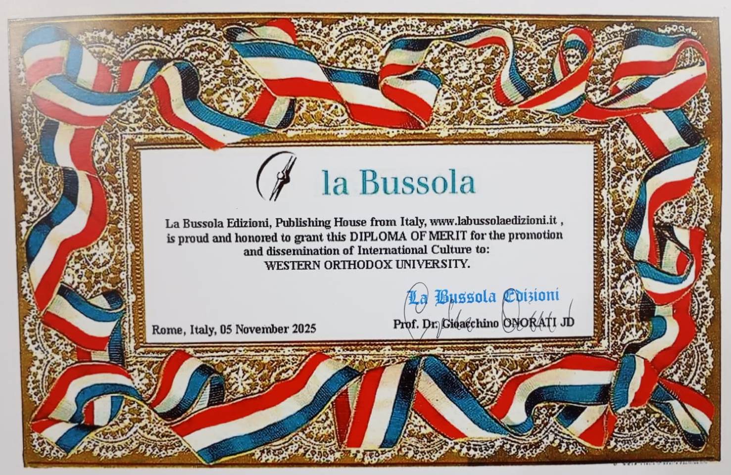 >>View La Bussola Edizioni Diploma of Merit for the promotion and dissemination of International Culture to The Western Orthodox University